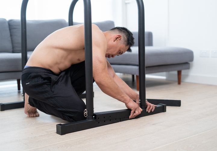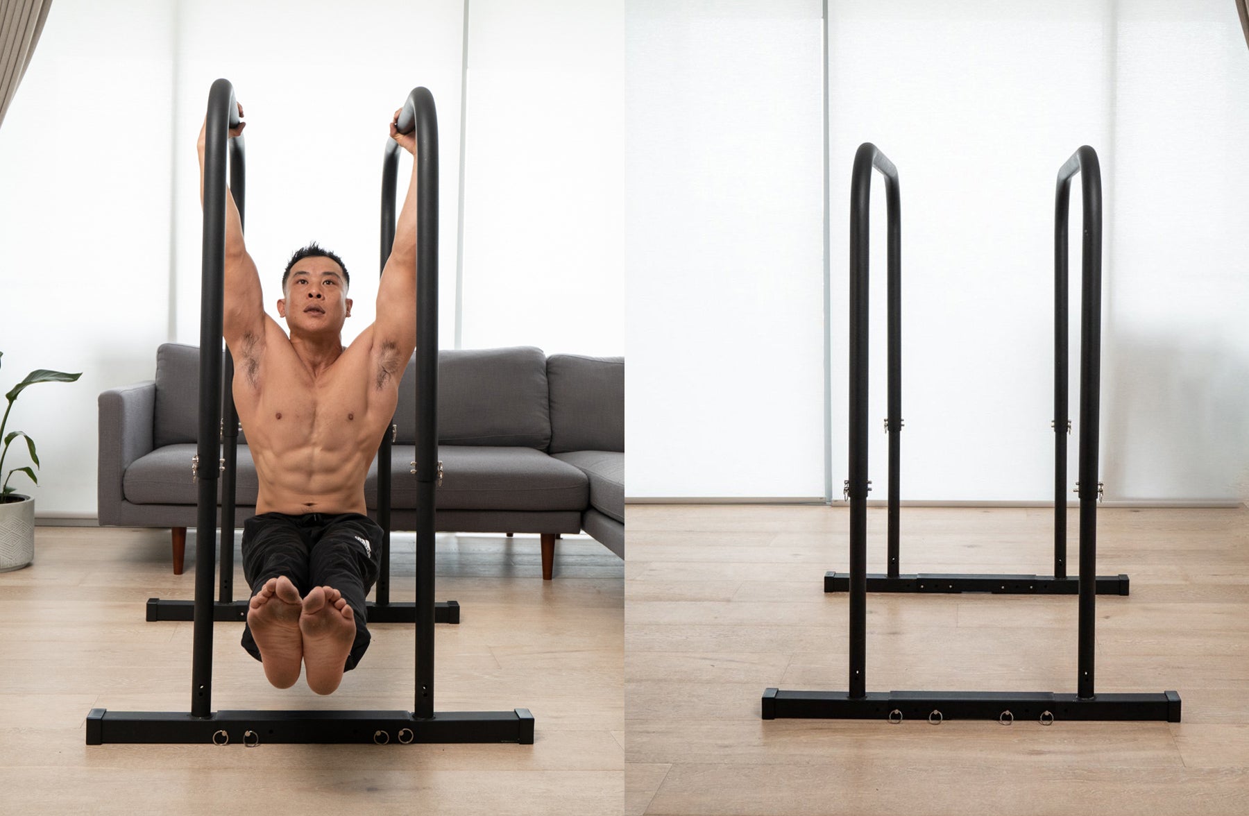 Meet the B-Bars, our parallel bars designed for your living room. Build strength in your upper body and core with bodyweight exercises. Perform pressing and horizontal pulling exercises (rows, dips) on the 36” height and vertical pulling (pull-ups/chin-ups) on the 51” height. Easy setup and freestanding – quick release clickpins for a speedy setup (no screws or bolts and no attachments to external fixtures.
