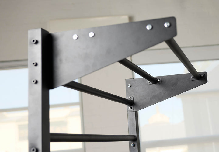 Classic wall-bars re-designed for any home. Completely freestanding with an in-built pull-up bar and removable dip bars for upper body strength. Perform flexibility exercises using the horizontal bars for a deeper stretch, the core bar for strict hanging core exercises and the in-built pull-up bar for pull-ups and chin-ups. Clip and dip to install parallel bars in seconds.