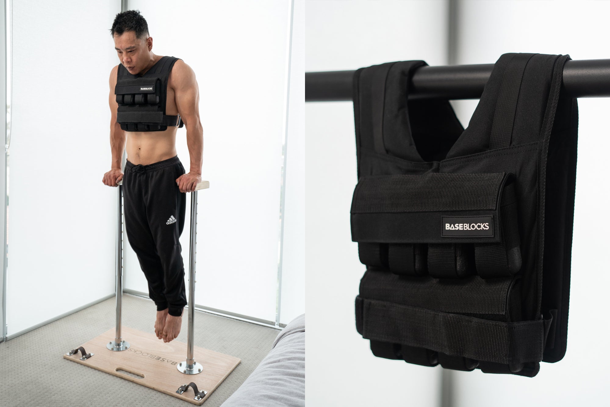 Your strength gains don’t need to be limited by your bodyweight. Overload any bodyweight exercise with the BaseVest. Single-strap design for quick setup and removable weights (2.75lbs x 15) to scale the exercise. Suitable for everything from push-ups to planches.